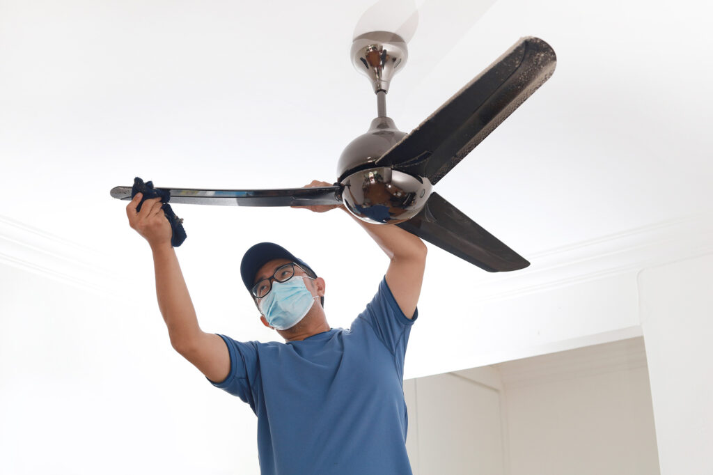 Always start by cleaning the spots that are highest up. When you start cleaning the fan, its accumulated dust will fall right onto the floor. So why bother cleaning the surfaces beneath the fan first? All the freshly cleaned spots will get dirty again as soon as you turn the fan on or begin cleaning the fan itself, so you should start with cleaning the fans first and foremost.